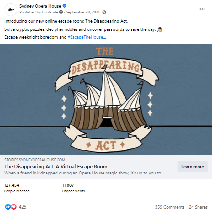 Facebook: Online Escape RoomEngagements: 11,887URL: Post LinkAwards: Shorthand Awards: Best Arts & Culture Story 2022