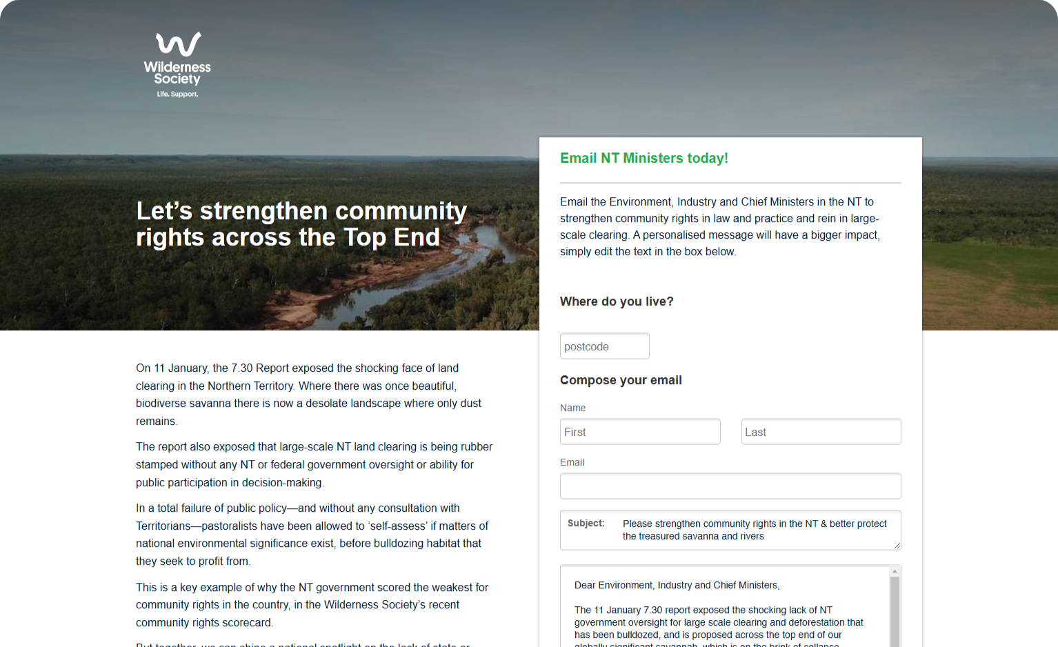 Project: 2022 Holiday AppealAbout: The Wilderness Society's annual end of year digital appeal – this year focusing on the Tasmania Wilderness World Heritage Area and inappropriate development. We raised over $130,000 in one day of the campaign with the help of a matching sponsor. I developed and ran the social media component of the campaign – sample social ads below.URL: Campaign Link