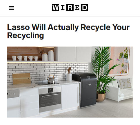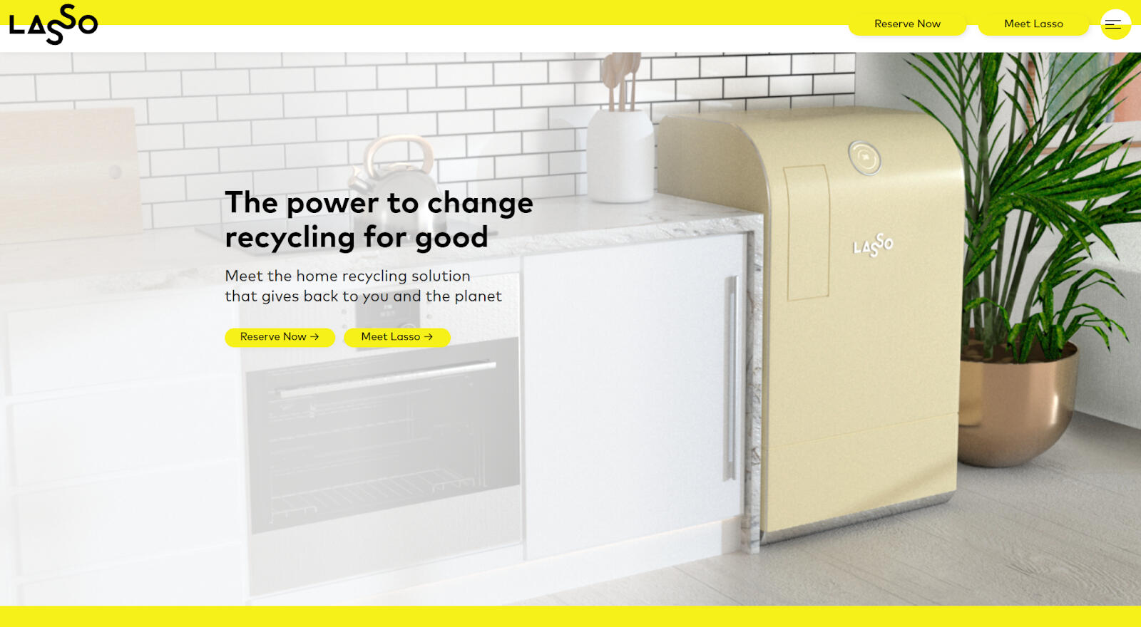 Project: Website & Product RenderAbout: To bring our audience on the journey and see the potential of Lasso's home recycling appliance, I worked with a designer to create a 3D appliance render and a suite of graphic assets including the Lasso website (see next)