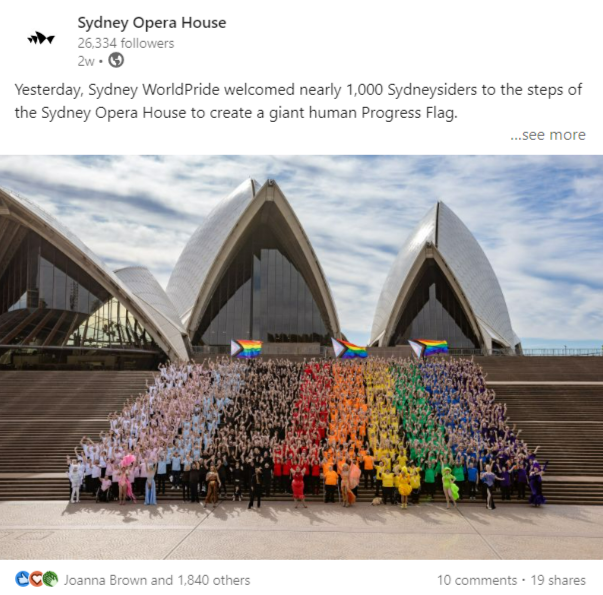 LinkedIn: Sydney World Pride 2022Engagements: 3,093URL: Post Link