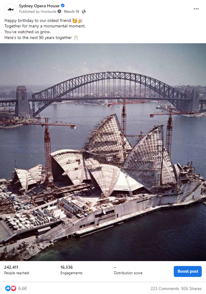 Facebook: Harbour Bridge Turns 90Engagements: 16,336URL: Post Link